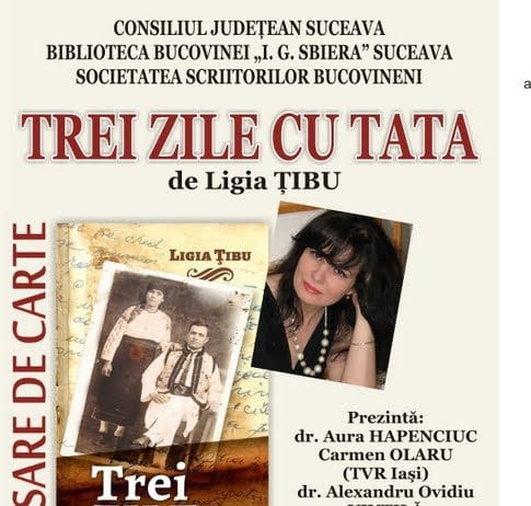 La Biblioteca Bucovinei va fi lansata cartea “Trei zile cu tata”, de Ligia Tibu