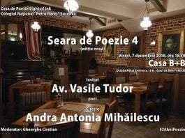 Avocatul Vasile Tudor, invitatul special al serii de poezie de la Casa B+B din Suceava