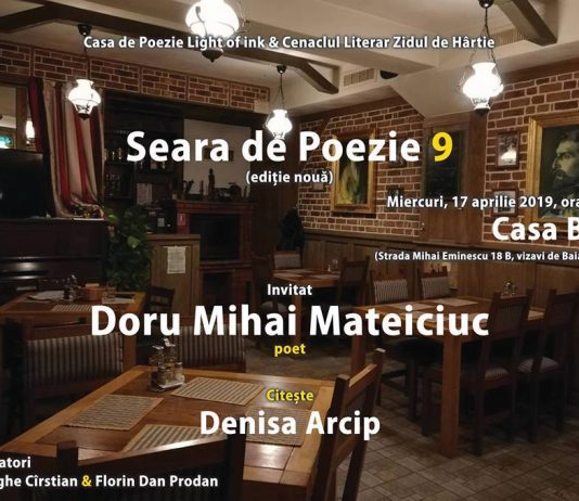 Poetul Doru Mihai Mateiciuc este invitatul Serii de Poezie 9 de la Casa B+B
