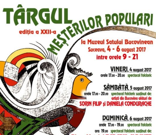 Târgul Meșterilor Populari, în perioada 4-6 august, la Muzeul Satului Bucovinean. Diana Matei și Taraful Cleante vor susține un spectacol folcloric în cadrul evenimentului