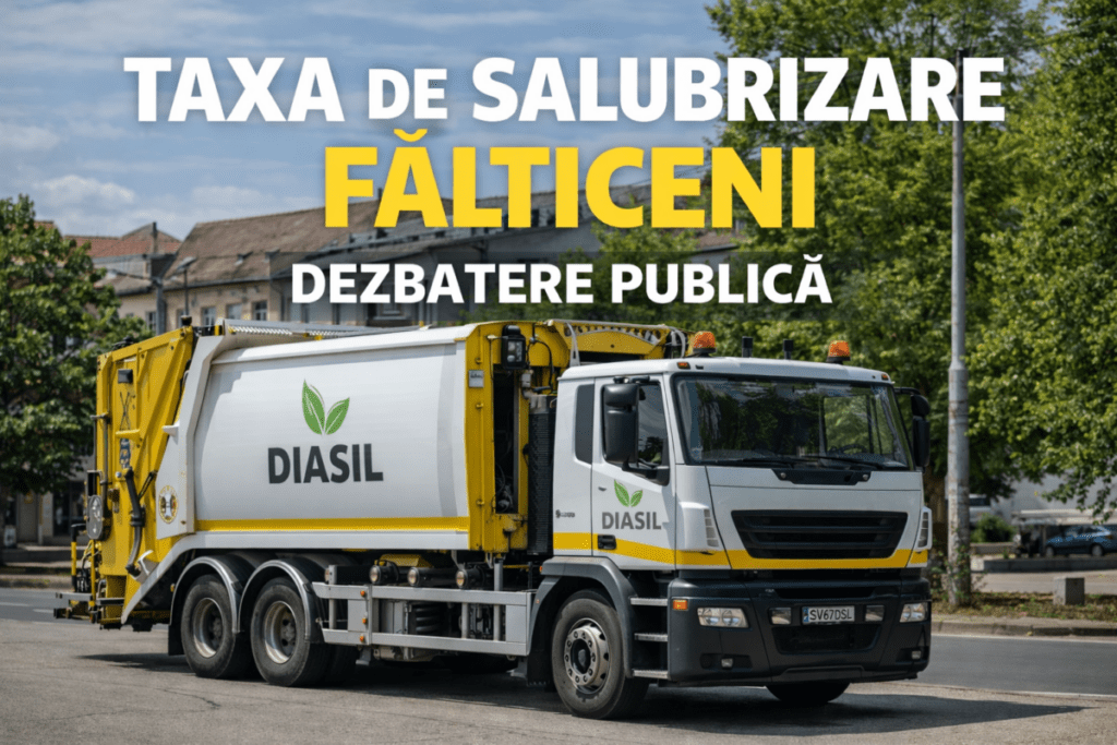 USR Fălticeni anunță organizarea unei dezbateri publice privind proiectul de modificare și completare a Regulamentului de instituirea și administrare a taxei de salubrizare, joi, 5 martie 2026, de la ora 13:30, la Biblioteca Municipală „Eugen Lovinescu” din Fălticeni.