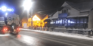 Ninge slab în zona de munte a județului Suceava. Carosabilul este...