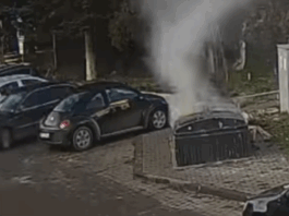 VIDEO//Bărbat din Suceava surprins plecând fără nicio grijă după ce a provocat un incendiu aruncând o țigară aprinsă într-o pubelă de gunoi