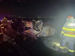 O mașină a luat foc la Milișăuți după ce s-a răsturnat pe cupolă. La volan era un tânăr de 20 de ani, fără permis...