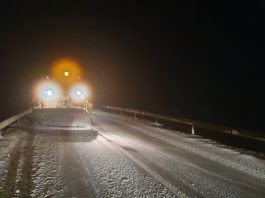 Ninsoare în zona de munte a județului Suceava. Drumarii acționează cu...