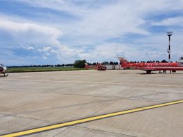 Elicoptere SMURD și avionul SMURD, pe Aeroportul Suceava pentru a prelua răniți din explozia de la magazinul Dedeman Botoșani