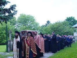 Racla cu moaștele Sfântului Mare Mucenic Ioan cel Nou de la Suceava a fost așezată spre închinare în curtea mănăstirii