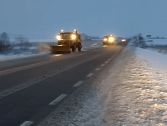 Circulație în condiții de iarnă pe drumurile naționale din județul Suceava. Carosabilul este umed cu sectoare de zăpadă frământată