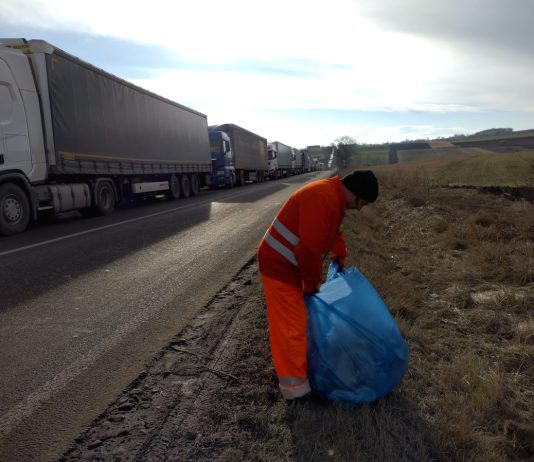 „Drumul național nu este tomberon de gunoi!”- mesajul DRDP Iași transmis camionagiilor care așteaptă în coloană spre Vama Siret