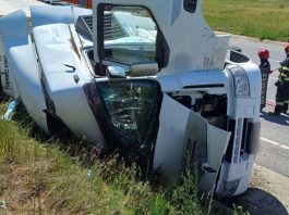 TIR încărcat cu portocale, răsturnat pe centura municipiului Suceava