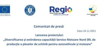 Lansarea proiectului:„Diversificarea și extinderea capacității Service Motoare Nord SRL de producție...