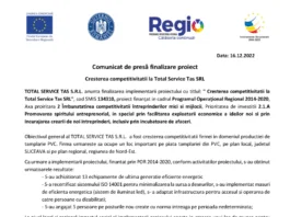 Comunicat de presă finalizare proiectCresterea competitivitatii la Total Service Tas SRL