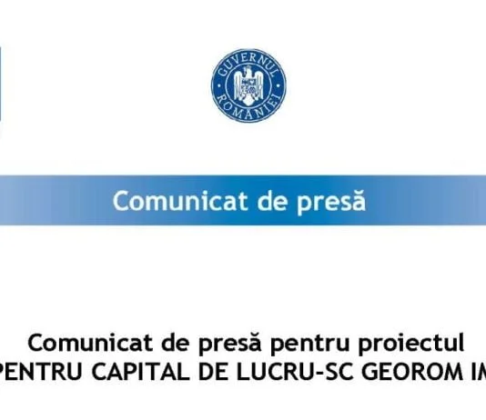 Comunicat de presă pentru proiectul „GRANT PENTRU CAPITAL DE LUCRU-SC GEOROM IMPEX SRL”
