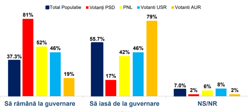 - Votanți PSD → 81% pentru rămânere la guvernare / 17% pentru ieșire