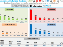 Polarizare generațională în preferințele electorale: Tinerii aleg AUR, seniorii rămân loiali PSD – dezvăluie Barometrul Informat.ro – INSCOP Research