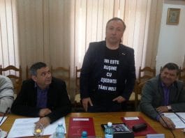 Consilierul judetean Dan Ioan Cusnir a purtat la sedinta CJ un tricou cu mesajul „Imi este rusine cu presedintele tarii mele”