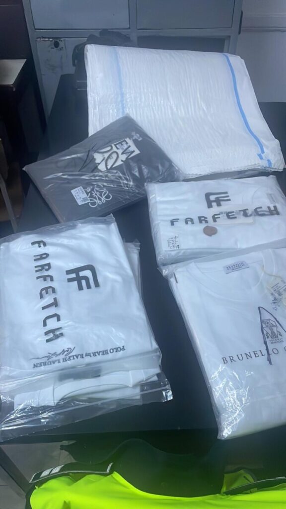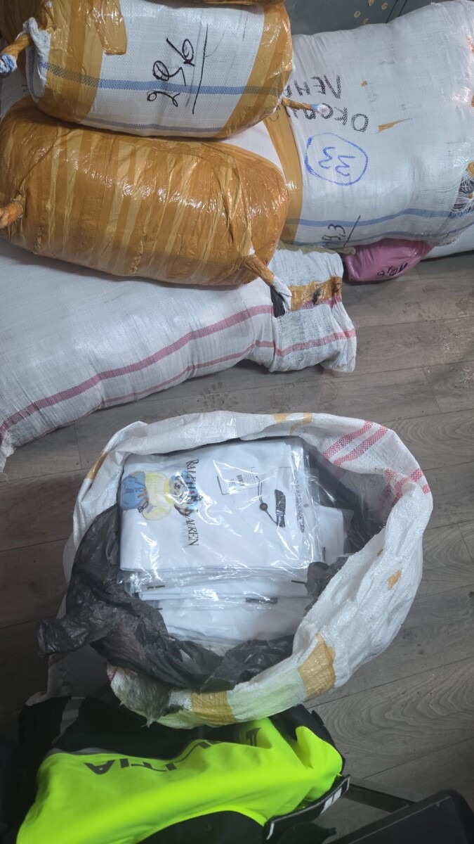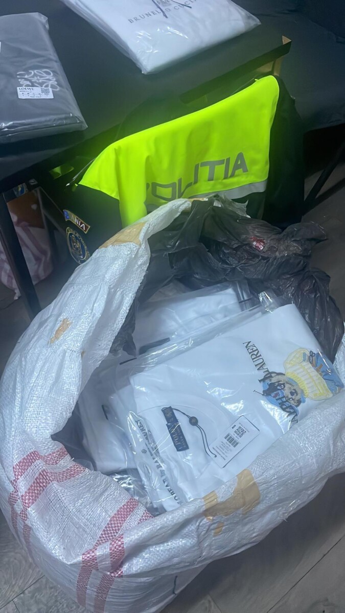 În urma verificării spațiului de marfă, polițiștii au descoperit 11 saci mari din rafie, sigilați cu bandă adezivă, care conțineau articole vestimentare de marcă (Nike, Hugo Boss, Moncler, Emporio Armani, Gucci și altele). Șoferul a declarat verbal că hainele aparțin unui cetățean necunoscut, provenind din Turcia, dar nu a putut prezenta niciun document de proveniență sau aviz de transport.