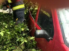 VIDEO-FOTO//Trei mașini avariate la Gura Humorului și Rădăuți în urma furtunii. La Gura Humorului coli de azbociment au căzut pe două mașini, iar la...