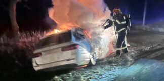 Mașina care a luat foc la Zamostea după ce a lovit...