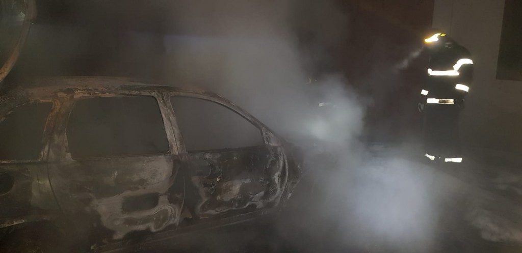 Mașina a ars în totalitate și s-a degradat o laterală (vopseaua) a autoturismului din apropiere.