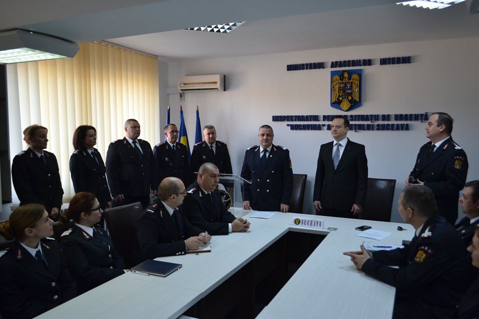Într-un cadru festiv, la sediul inspectoratului, ceremonia s-a desfășurat în prezența prefectului județului Suceava, Alexandru Moldovan și a Adjunctului inspectorului general al IGSU, colonelul Cezar-Mihai Damian.