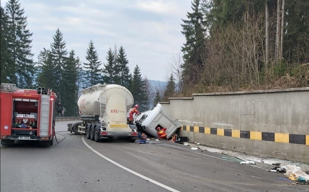 Un accident rutier cu implicarea unui TIR a avut loc astăzi, în jurul orei 07:30, în in Pasul Mestecăniș, pe DN17.
