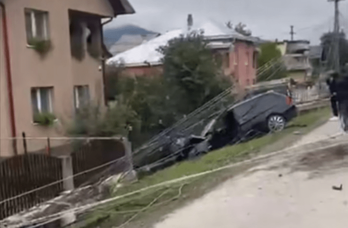 În urma impactului, stâlpul a fost distrus, iar autoturismul a fost avariat.