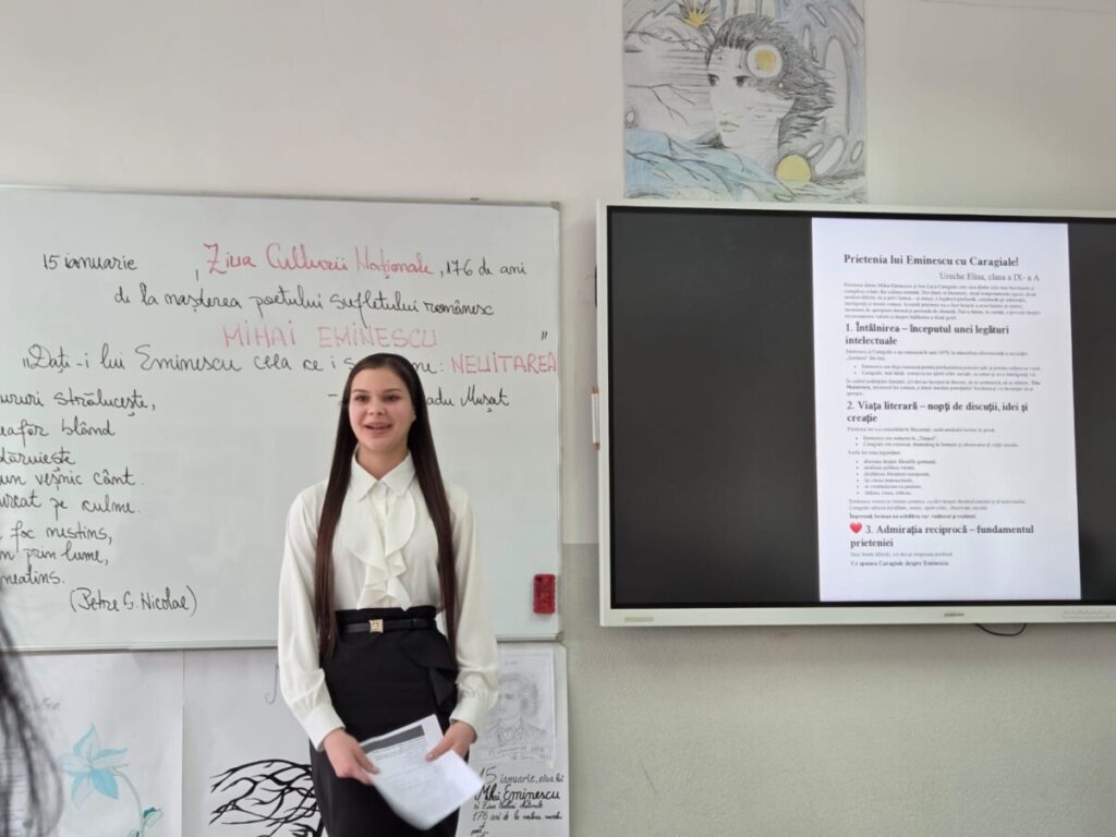 Coordonatoarele activității, profesoarele Tcaciuc Ionela și Tomescu Floarea, au subliniat rolul educativ și formativ al operei eminesciene în rândul tinerilor: