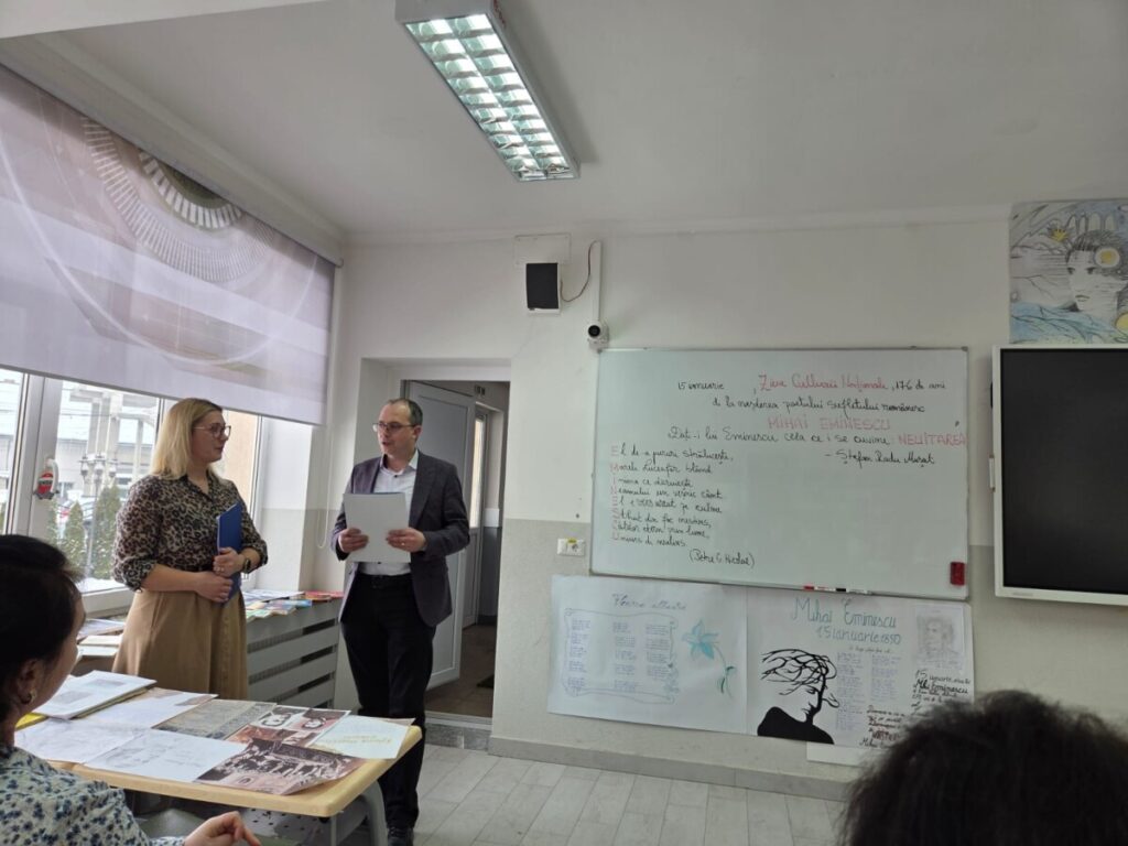 Deasemeni, și doamna director adjunct, învățătoarea Tomuț Cristina, a subliniat importanța acestor inițiative: „Cultura este fundamentul pe care construim caracterele elevilor noștri. Activitățile de astăzi, prezentate cu mândrie și în cadrul centrului metodic, demonstrează că școala noastră este un spațiu viu, unde valorile naționale sunt prețuite și transmise mai departe prin colaborarea exemplară a întregului colectiv.” A prezentat și proiectul educational coordonat de doamna prof.pt.înv.primar, Tipa Casandra, desfășurat la ciclul primar, scopul principal fiind aprofundarea valorilor culturale românești și dezvoltarea abilităților practice prin activități creative. Elevii au fost încurajați să exploreze viața poetului și să transpună emoția versurilor în imagini, culori și cântec, iar obiectivele au urmărit formarea unui sentiment de apartenență culturală prin realizarea de compoziții plastice și mini-cărți. Monitorizarea întregului proces a fost asigurată de toate cadrele didactice din învățământul primar, analizând gradul de implicare a elevilor, iar evaluarea s-a bazat pe observarea directă și pe calitatea produselor finale, precum colajele și afișele tematice. Prin acest demers, textele eminesciene au devenit suport pentru creativitate și pentru învățarea prin experiență directă. Proiectul a reuțit astfel să îmbine educația literară cu exprimarea artistică într-un format interactiv și atractiv, rezultatul final reflectând respectul tinerei generații față de moștenirea culturală și identitatea națională română.