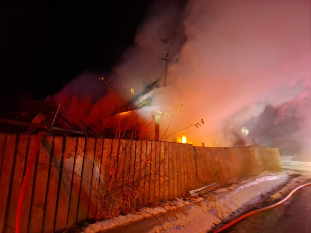 Un incendiu violent a izbucnit joi seara, în satul Leucușești, fiind anunțat la 112 la ora 21:04.