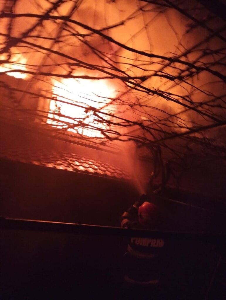 Cauza probabilă a incendiului a fost efectul termic generat de un coș de fum amplasat sau neizolat corespunzător față de materialele combustibile din construcție.