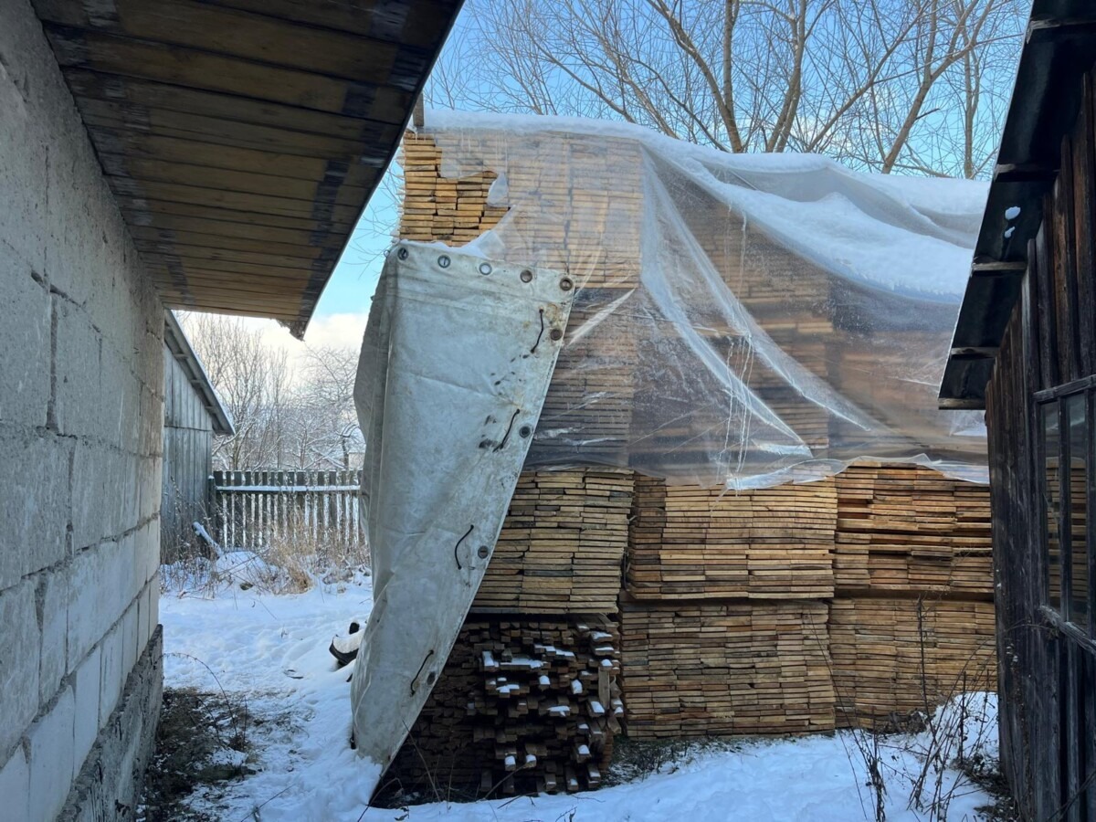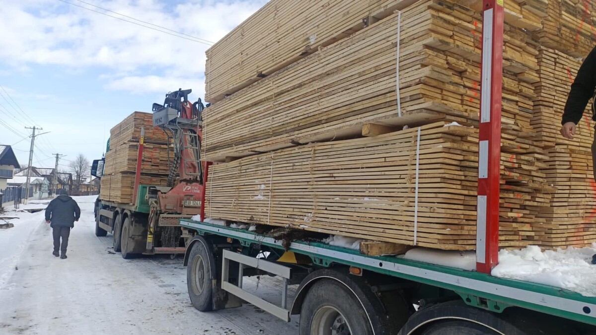 La locația indicată, sub o prelată, a fost descoperită o cantitate importantă de material lemnos disimulat: o stivă de cherestea sub formă de paleți și mai multe piese de bușteni gater de diferite dimensiuni.