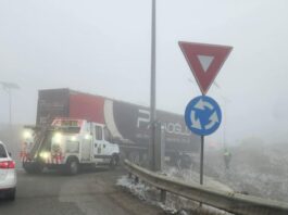 Accident rutier pe centura Sucevei: Un camion turcesc a distrus parapetul metalic și un stâlp de iluminat în sens giratoriu