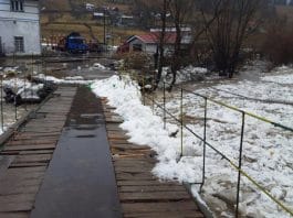 VIDEO FOTO Deblocări de gheţuri pe Bistriţa coordonate de prefectul Constantin Harasim. Un pod pietonal din Vatra Dornei a fost distrus