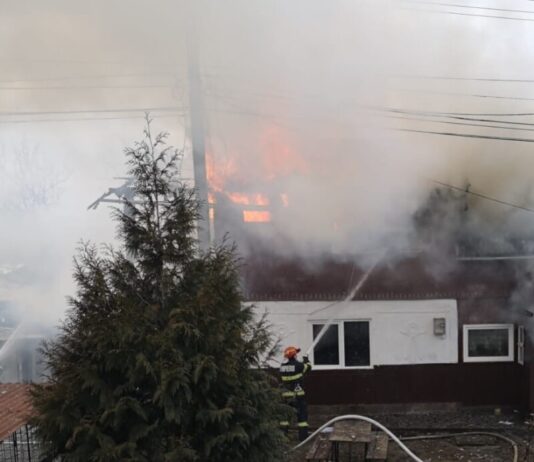 FOTO VIDEO// Puternic incendiu la o casă de locuit din Frasin generat de un cablu electric defect