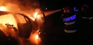 Un autoturism a luat foc în mers și a ars complet...