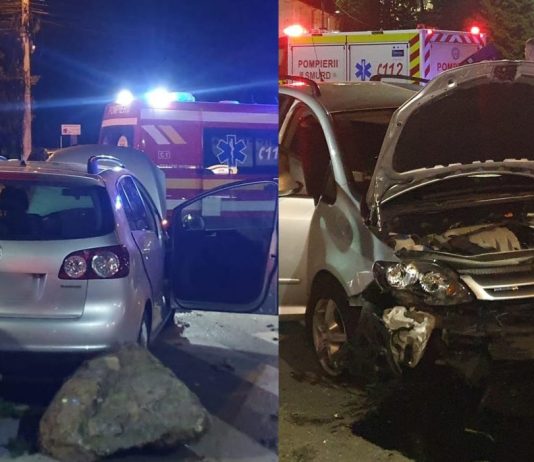 Accidentul din Suceava: O tânără de 19 ani a pătruns cu mașina pe un scuar lovind o piatra decorativă plasată în perimetrul scuarului