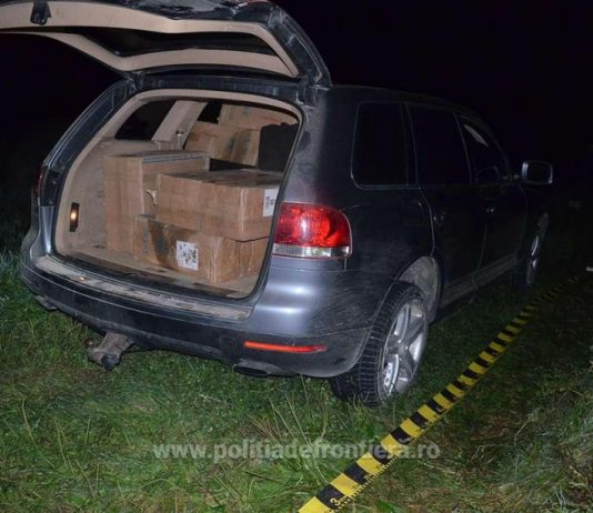 Un Touareg încărcat cu aproape 15.000 pachete cu țigări de contrabandă, depistat cu motorul pornit în apropierea frontierei la Vicovu de Sus