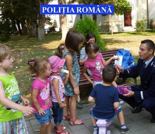 Peste o sută de copii au primit ghiozdane echipate cu penare şi rechizite din partea polițiștilor suceveni