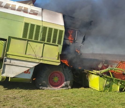 O combină agricolă a luat foc în timp ce se afla pe câmp, la Forăști