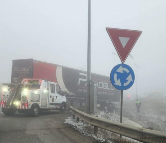 Accident rutier pe centura Sucevei: Un camion turcesc a distrus parapetul metalic și un stâlp de iluminat în sens giratoriu