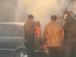 VIDEO//Un autoturism a luat foc în mers în centrul comunei Marginea de la un scurt circuit electric