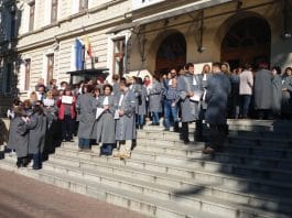 Protest al grefierilor în fața Palatului de Justiție din Suceava