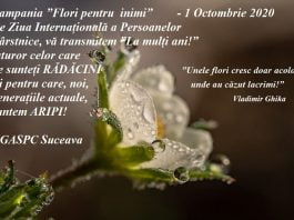 De Ziua Internațională a Persoanelor Vârstnice, DGASPC Suceava organizează online campania „Flori pentru Suflet” și reamintește de existența Telefonul Vârstnicului