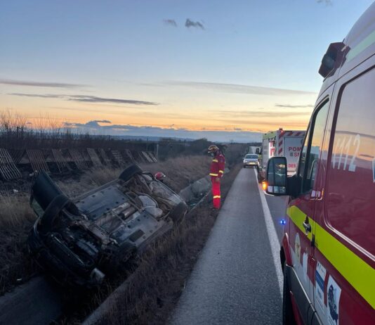 Accident pe DJ290 în comuna Fântânele: Un șofer beat a plonjat cu mașina în șanț