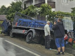 Accident rutier pe DJ 208A în Udești: O autoutilitară cu butelii de gaz a intrat într-un gard