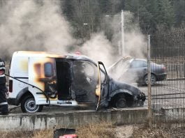 O autoutilitară a ars pe DN 17, la Pojorâta, în urma unui incendiu produs de la instalația de încălzire a mașinii