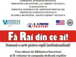 Biblioteca Bucovinei lansează campania „Fă Rai din ce ai!” Instituția își îndeamnă vizitatorii să doneze cărți pentru copiii de la Casa de tip familial...
