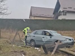 Accident rutier pe DJ208A, în Rușii-Mănăstioara: Două persoane rănite după impact cu un stâlp și gard