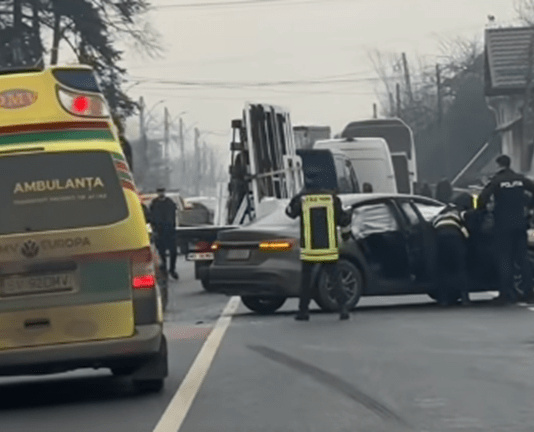 Accident rutier pe DN17, la Vama: Două persoane rănite după ce mașina a fost acroșată de un autocar